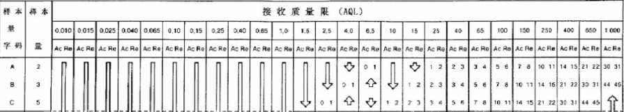 1.如图,按接收质量限(AQL)检索的逐批检验抽样计划2012  如图所示当样本量为2的时候,为什么还会有AC、Re大于2的情况呢,总共就两个怎么会有3个、4个一直到31个呢