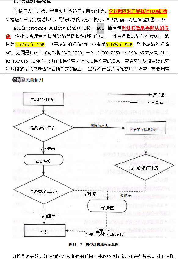 问题1.如图中文字所述,生产进行的100%灯检后,合格的灯检后样品需要被AQL抽检进行灯检效果的再确认,而AQL抽检是按照三种缺陷不同的拒绝概率的(参照gb2828-2012)),假设产品批量是15w支,按照一般检验水平III的等级,样本量字码是P,800支,是每种缺陷都 分别抽800支,抽三次对应三个缺陷的抽样量,还是一次性共抽800支,如果是一次性共抽800支这种情况下,严重缺陷的数量会被累计至一般缺陷样本数量里面吗?